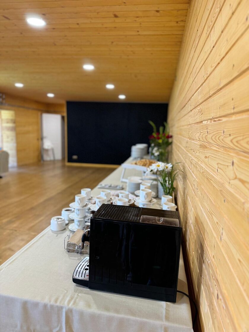 Zālei pieejama atsevišķa virtuve, kas piemērota cienasta sagatavošanai vai ēdinātāju darbam. Papildu ērtībām pie banketu zāles atrodas neliela āra terase zem jumta, kas piemērota atpūtai svaigā gaisā jebkuros laikapstākļos.