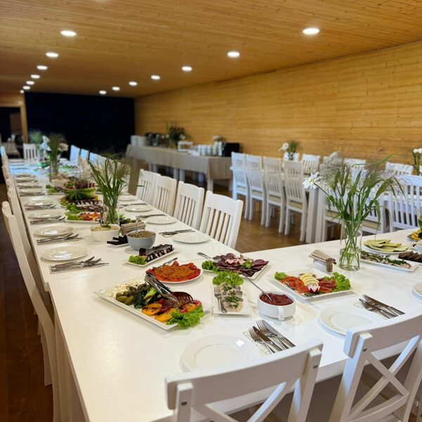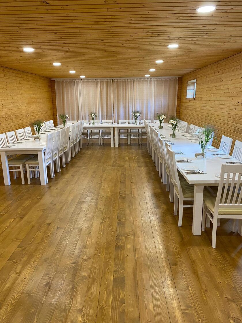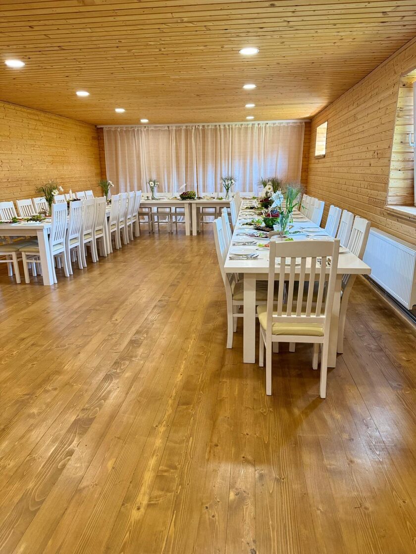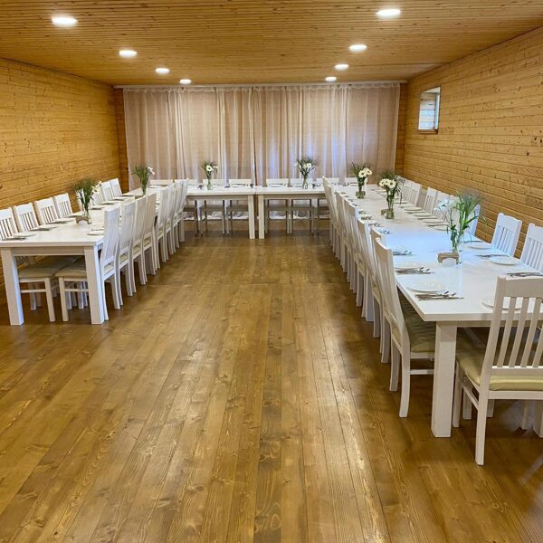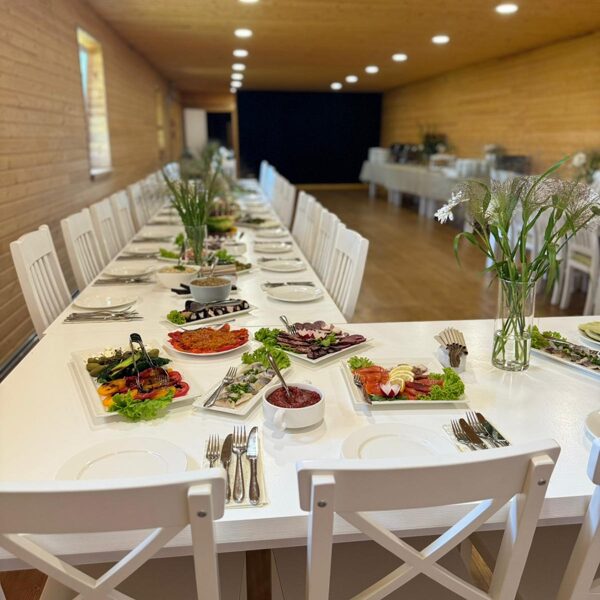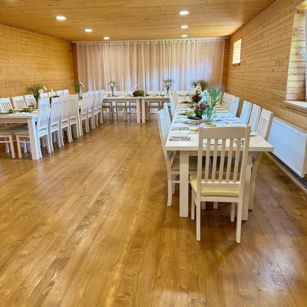 Banketu zāle ar guļvietām un terasi ir lieliska izvēle svinībām, kur viss nepieciešamais atrodas vienuviet – gan pasākumam, gan atpūtai pēc tā.