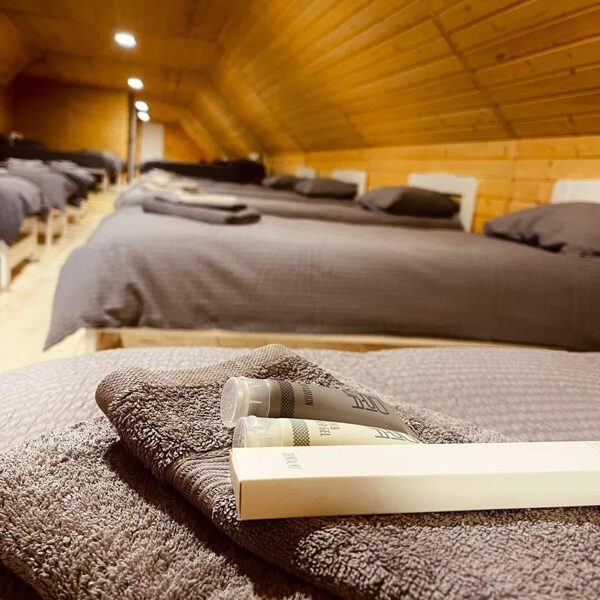 - liela kopīga guļamistaba draugu kompānijai (21 personas), ar dušu un virtuvi