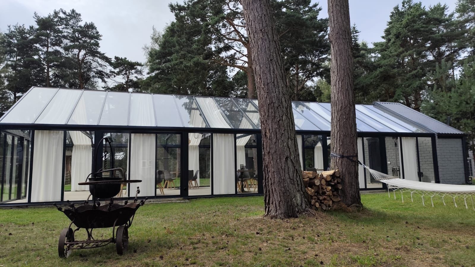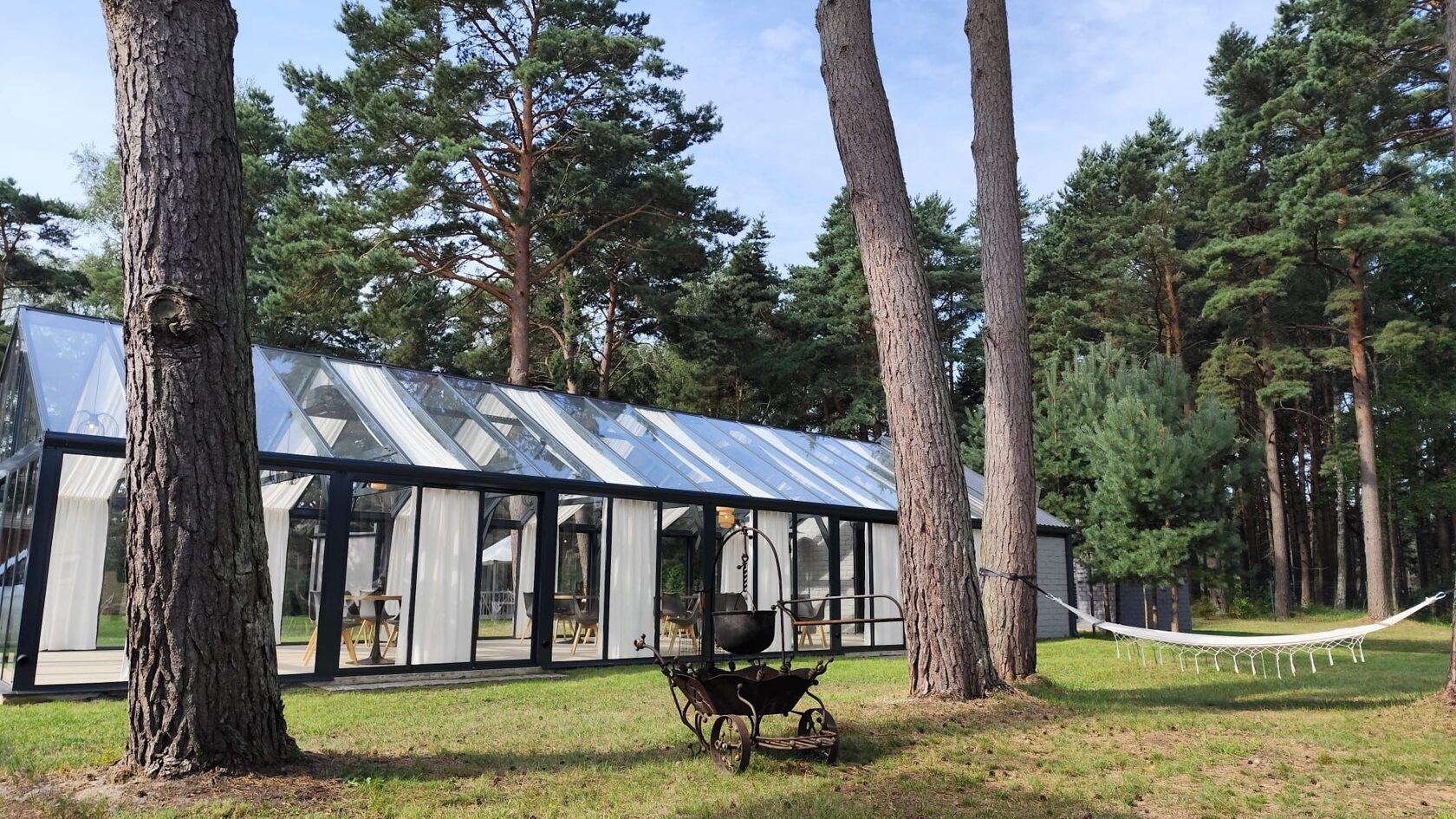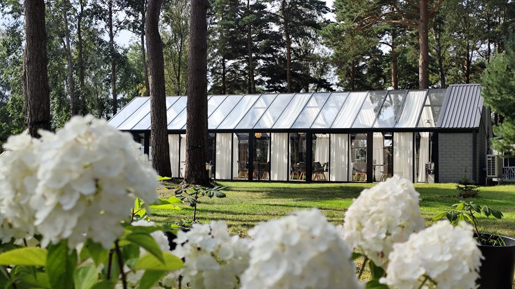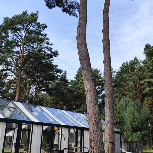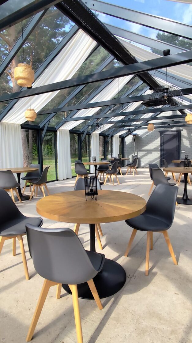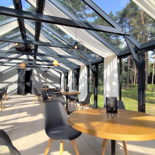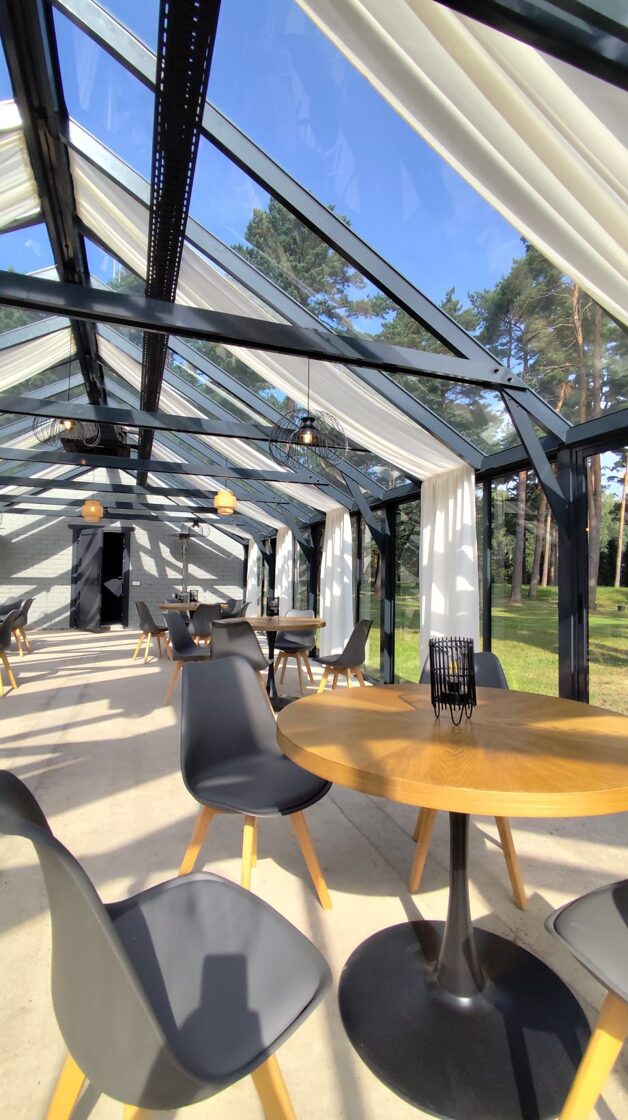 Stiklotā, gaišā Ziemas dārza telpa ir īpaši piemērota svinībām, pasākumiem un nesteidzīgai atpūtai dabas ieskautā vidē. Panorāmas logi rada plašuma un tuvības sajūtu dabai, vienlaikus nodrošinot komfortu jebkurā gadalaikā.